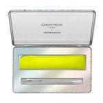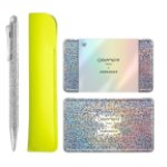 Kuličkové pero Ecridor Germanier od značky Caran dAche je dokonalým spojením precizního zpracování a výjimečného designu. Šestihranné tělo z mosazi s platinovou povrchovou úpravou zdobí jemné gilošové rytí inspirované perlovým motivem návrháře Kévina Germaniera. Elegantní vzhled podtrhuje tlačítko s holografickým skleněným krystalem a decentní podpis na boku pera. Uvnitř najdete černou náplň Goliath s výdrží až 600 stran. Exkluzivitu celého setu završuje kožené pouzdro v neonově žluté barvě, vyrobené z upcyklované francouzské kůže. Vše je uloženo v kovové holografické krabičce s recyklovatelnými prvky – ideální jako designový dárek s trvalou hodnotou.
