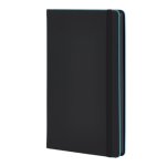 Luxusní italský zápisník ve velikosti 13 × 21 cm s černou obálkou a jemným světle modrým lakovaným okrajem pro stylový kontrast. celý popis