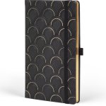 Luxusní italský zápisník ve velikost 13 x 21 cm s elegantními reliéfními vzory a jemnými metalickými detaily inspirovanými 20. lety. celý popis