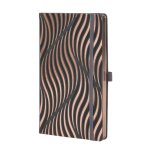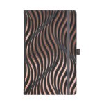 Designový italský zápisník ve velikosti 9 x 14 cm s vlnitým metalickým vzorem na kouřově šedé obálce zaujme na první pohled i dotek. celý popis