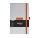 Luxusní italský zápisník ve velikosti 13 × 21 cm zaujme ledově stříbrnou barvou s oranžovými detaily, které dodávají celku energii. celý popis