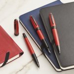 Kuličkové pero Cross řady Bailey v elegantním moderním designu. Pero má lakovaný matně červený povrch. Doplňky jsou lesklé černěné PVD technikou. Středový kroužek s hlubokými rytinami zvýrazňuje vzhled pera. Otočný mechanismus pro vysunutí náplně. Součástí balení je černá a modrá náplň.