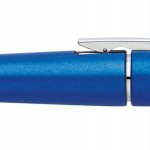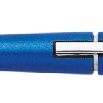 Kovový teleskopický roller bez víčka v modré barvě a leskle chromovanými doplňky. Patentovaný teleskopický mechanismus vysouvání náplně s gelovým inkoustem. Pevný pružinový klip. Dodáváno v elegantní dárkové krabičce.