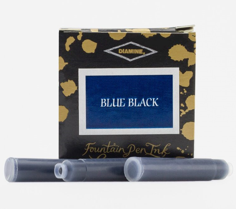 Inkoustové bombičky Diamine v barvě Blue Black - modročerná. Inkoust v nich je na vodní bázi. Balení obsahuje 6 ks bombiček. Vyrobeno v Anglii.