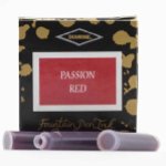 Inkoustové bombičky Diamine v barvě Passion Red - odstín červené. Inkoust v nich je na vodní bázi. Balení obsahuje 6 ks bombiček. Vyrobeno v Anglii.