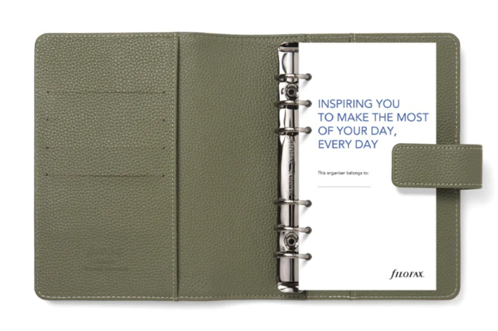 Filofax Camden osobní olivový (195 × 175 mm) je diář s výměnnou kroužkovou vazbou, recyklovaným papírem a promyšlenými vnitřními kapsami, který nabízí kombinaci udržitelnosti a každodenní funkčnosti. Vhodný pro každého, kdo hledá stylové plánování bez kompromisů.