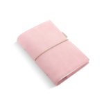 Velice jemný a na dotek příjemný diář Domino Soft z materálu připomínající kůži v pastelové růžové barvě. celý popis