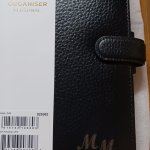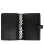 Levá vnitřní strana desek: 6 vertikálních přihrádek na kreditní karty, pod nimi otevřená vertikální kapsa po celé délce diáře.