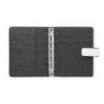Diář Filofax z kolekce Moonlight v bílém provedení vyniká kontrastní barvou vnější a vnitřní strany desek a jemným vzorem přípomínající hvězdnou oblohu. Desky jsou vyrobeny ze syntetického materiálu s jemnou strukturou koženého vzhledu s detaily ze zlaté fólie. Velikost náplně Pocket - formát papíru 80 x 120 mm.