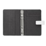 Diář Filofax z kolekce Moonlight v bílém provedení vyniká kontrastní barvou vnější a vnitřní strany desek a jemným vzorem přípomínající hvězdnou oblohu. Desky jsou vyrobeny ze syntetického materiálu s jemnou strukturou koženého vzhledu s detaily ze zlaté fólie. Velikost náplně Personal - formát papíru 95 x 171 mm.