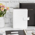 Diář Filofax Osobní z kolekce Moonlight v bílém provedení s detaily ze zlaté fólie a vzorovanou kontrastní vnitřní stranou desek. celý popis
