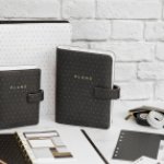 Diář Filofax Osobní z kolekce Moonlight v černém provedení s detaily ze zlaté fólie a vzorovanou kontrastní vnitřní stranou desek. celý popis