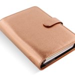 Speciální edice diáře Filofax Saffiano se strukturovaným vzhledem desek v barvě růžového zlata. celý popis