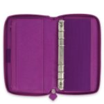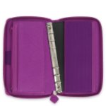 Zapínání pomocí zipu. Kroužková vazba kterou je možné vyjmout a používat diář jako peněženku. Vnitřní kapsu na zip je možné použít na drobné mince. Velké množství kapes na vizitky, kreditní karty. Velikost diáře je Compact - užší desky než velikost Personal. Do diáře patří náplně velikosti Personal - formát papíru 95 x 171 mm.Diář je standardně naplněn českým a slovenským kalendářem.