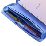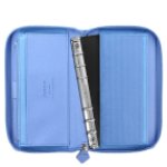 Praktický modrý diář s příjemným povrchem desek s jemnou strukturou, která dodává jeho barvě dvoutónový efekt. Zapínání pomocí zipu. Kroužková vazba kterou je možné vyjmout a používat diář jako peněženku. Vnitřní kapsu na zip je možné použít na drobné mince. Velké množství kapes na vizitky, kreditní karty.  Velikost diáře je Compact - užší desky než velikost Personal. Do diáře patří náplně velikosti Personal - formát papíru 95 x 171 mm. Diář je standardně naplněn českým a slovenským kalendářem.