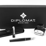 Sada plnicího pera Diplomat Excellence A2 Black Lacquer s brilantním vícevrstvým lakem v černé barvě, černého inkoustu a koženého pouzdra na jedno pero s logem Diplomat. Pero v sadě dodáváno s hrotem M. Pero je perfektně vyvážené pro pohodlný pocit při psaní. Prvotřídní hrot je vyrobený z nerezové ocele. Víčko je nasazovací, elegantně tvarovaný klip je pochromovaný. Pero je vybavené systémem na bombičky i na plnění konvertorem. Konvertor je součástí balení, bombičky je nutné v případě zájmu dokoupit. Dodáváno v elegantní dárkové krabičce.