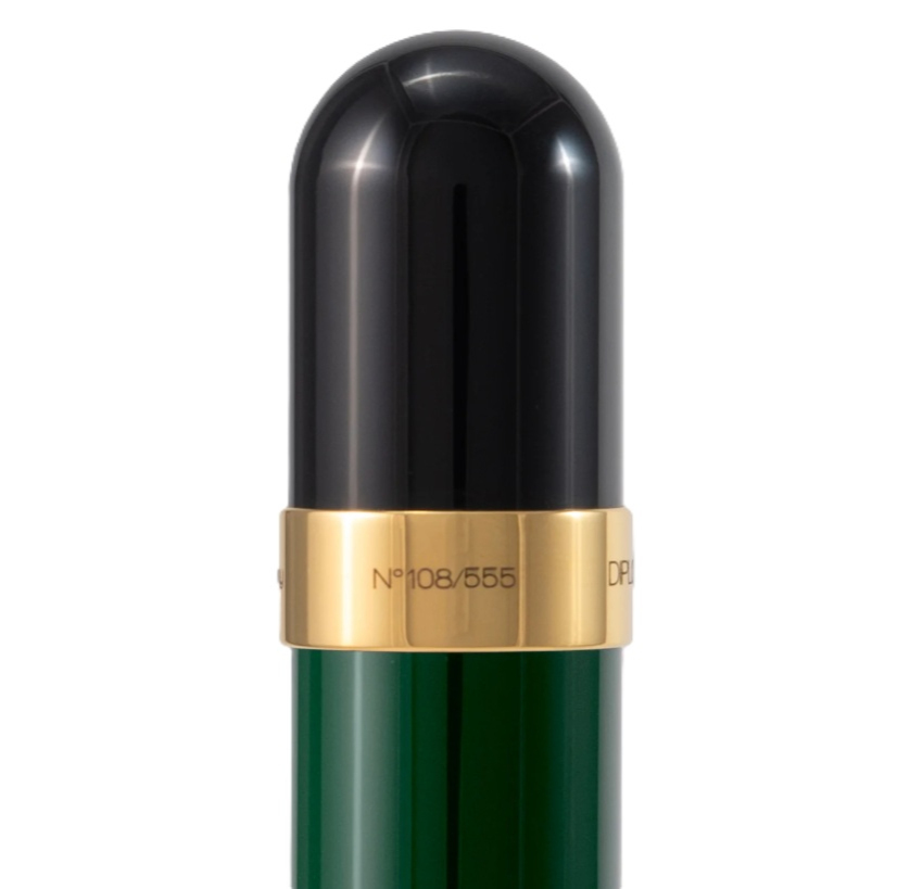Diplomat X.O Triple 5 Racing Green je plnicí pero pro ty, kteří si potrpí na detaily. Plynule zaoblené tělo v typickém tvaru doutníku přirozeně padne do ruky a jeho hluboký zelený lak připomíná legendární odstín britských sportovních vozů. Zlacený prstenec na víčku vizuálně odkazuje na pásky jemných doutníků a dodává peru osobitý charakter. Tělo z kovu s kvalitním lakem působí robustně, ale svou hmotností zůstává příjemné i při delším psaní.