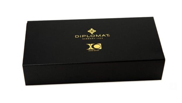 Dvoutónový ocelový hrot JoWo číslo 6 je známý svou spolehlivostí a hladkým vedením po papíru, díky čemuž pero reaguje na každý jemný pohyb ruky a dovolí Vám psát s jistotou i elegancí. Systém plnění je založený na mezinárodním standardu – pero je vybavené konvertorem a v balení najdete také šest modrých bombiček Diplomat. Snadno tak zvolíte, zda dáte přednost pohodlí náplní, nebo vlastnímu výběru inkoustu v lahvičce.