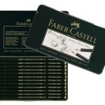 Sada dřevěných grafitových tužek Faber Castell nejvyšší kvality. 12 různých tvrdostí. Speciální nelámavá a nárazuvzdorná tuha. Vhodné pro psaní, kreslení i skicování. Dodáváno v kovové krabičce.