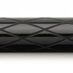 Tělo vyrobené z černé pryskyřice s vybroušeným kosočtvercovým reliéfem ostře kontrastuje s lesklými pochromovanými doplňky. Pero je doplněno celokovovým odpruženým klipem.