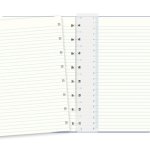 Kvalitní modrý zápisník ve velikosti A5 s příjemným povrchem desek připomínající kůži od tradiční anglické značky Filofax. Tento poznámkový blok umožňuje vyjmout a zpět vrátit listy nebo třeba přehnout desky o 360°. Součástí balení je 56 linkovaných listů gramáže 100 g/m2, 4 čtverečkované a 4 čisté listy, 4 barevné rozdělovníky s kapsičkou a průhledné pravítko. Pružná gumička pro uzavření zápisníku. Velikost je 214 x 161 mm.