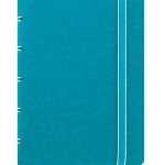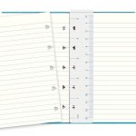 Kvalitní tyrkysový zápisník ve velikosti A6 s příjemným povrchem desek připomínající kůži od tradiční anglické značky Filofax. Tento poznámkový blok umožňuje vyjmout a zpět vrátit listy nebo třeba přehnout desky o 360°. Součástí balení je 56 linkovaných listů gramáže 100 g/m2, 4 čtverečkované a 4 čisté listy, 4 barevné rozdělovníky s kapsičkou a průhledné pravítko. Pružná gumička pro uzavření zápisníku. Velikost je 144 x 105 mm.