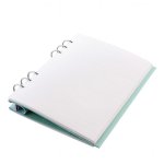 Kvalitní pastelově zelený zápisník Clipbook ve velikosti A5 s příjemným povrchem desek připomínající kůži a kroužkovou vazbou od tradiční anglické značky Filofax. celý popis