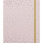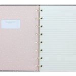 Zápisník Filofax ve velikosti A5 s pevnými laminovanými kartonovými deskami v růžové barvě a s detaily ze zlaté fólie a vzorovanou vnitřní stranou desek. Tento poznámkový blok umožňuje vyjmout a zpět vrátit listy nebo třeba přehnout desky o 360°. Součástí balení je 56 linkovaných listů gramáže 100 g/m2, který je vhodný i pro plnicí pera. Pružná gumička ve zlaté barvě pro uzavření zápisníku. Velikost je 214 x 153 mm.