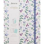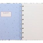 Zápisník Filofax ve velikosti A5 z kolekce Garden s pevnými laminovanými kartonovými deskami s motivem rozkvetlé zahrady a s detaily ze zlaté fólie a vzorovanou vnitřní stranou desek. Tento poznámkový blok umožňuje vyjmout a zpět vrátit listy nebo třeba přehnout desky o 360°. Součástí balení je 56 linkovaných listů gramáže 100 g/m2, který je vhodný i pro plnicí pera. Pružná gumička v modré barvě pro uzavření zápisníku. Velikost je 210 x 148 mm.