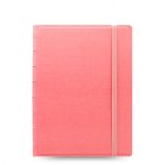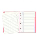 Kvalitní pastelově růžový zápisník ve velikosti A5 s příjemným povrchem desek připomínající kůži od tradiční anglické značky Filofax. Tento poznámkový blok umožňuje vyjmout a zpět vrátit listy nebo třeba přehnout desky o 360°. Součástí balení je 56 linkovaných listů gramáže 100 g/m2, 4 čtverečkované a 4 čisté listy, 4 barevné rozdělovníky s kapsičkou a průhledné pravítko. Pružná gumička pro uzavření zápisníku. Velikost je 214 x 161 mm.