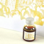 Lahvičkový inkoust pro plnicí pera z limitované edice od české značky Inkebara ve žluté barvě nazvané Sluneční zámecká. celý popis