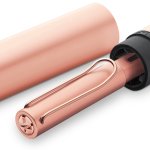 Pero Lamy v barvě růžového zlata je inspirované krásou drahých kovů. Tělo vyrobené z hliníku dává psaní lehkost, která je umocněna pohodlným držením trojhranného ergonomického úchopu. Doplňky jsou pokoveny růžovým zlatem. Hrot je z nerez oceli v černém provedení. Víčko je nasazovací. Plnicí pero je vybavené systémem na bombičky i na konvertor Z 28 (není součástí balení). Dodáváno ve stylové dárkové krabičce.