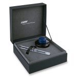 Sada plnicího pera Lamy Vista Transparent a lahvičkového inkoustu T 52 modročerné barvy v elegantní dárkové kazetě. Lamy Vista Transparent je plnicí pero s tělem z průhledného ABS plastu. Charakteristická úchopová zóna a odpruženým klip. Víčko je nasazovací. Hrot je z nerezové ocele. Plnicí pero je vybavené systémem na bombičky i na konvertor Z 28. Bombička je součástí balení, konvertor je nutné v případě zájmu přikoupit. Lahvičkový inkoust (50 ml) má modročernou barvu. Dodáváno s voucherem na kurz Akademie psaní.