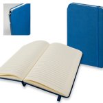 Poznámkový zápisník v modré barvě s gumičkou a prostorem pro propisku na hřbetu zápisníku. Obsahuje 192 linkovaných stran. Desky jsou z lepenky, potaženě umělou kůží. Velikost zápisníku je 140 x 210 mm.