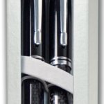 Krásná sada kovového plnicího a kuličkového pera s černé barvě s tělem v designu uhlíkového vlákna. Plnicí pero má ocelový hrot v šířce M - střední. Kuličkové pero má otočný mechanismus pro vysunutí velkokapacitní náplně. Dodáváno v dárkové krabičce.
