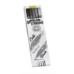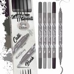Sada 5 kaligrafických fixů v odstínech šedé po černou s kaligrafickým 2 mm hrotem na jedné straně a flexibilním štětcem na druhé. celý popis