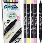 Sada 5 kaligrafických fixů Calli.Twin v pastelových barvách se zkoseným 3 mm hrotem a inovativním dvojitým hrotem. celý popis