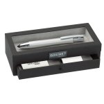 Kvalitní mechanická tužka stříbrné barvy značky Online. Matné hlinikové tělo je zdobeno lesklými kovovými doplňky. Příjemně padnoucí tužka je perfektním dárkem pro každého, kdo rád kreslí. Na tuhy o síle 5,5 mm. Dodáváno v dárkové krabičce s náhradní tuhou, gumou a ořezávátkem. Vyrobeno v Německu.