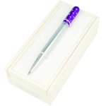 Elegantní kovové kuličkové pero Online Crystal má horní část ve fialové barvě zdobenou krystaly a liniemi. celý popis