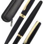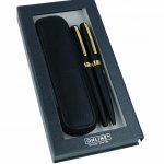 Dárková sada matně černého kuličkového a plnicího pera Online Eleganza s pozlacenými doplňky. Včetně koženého pouzdra na pera. celý popis