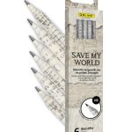 Grafitové tužky Save My World jsou vyrobeny ze 100% recyklovaných novin, každá tužka je originál. Sada obsahuje 6 tužek s vrdostí HB. Robusní tuha se snadno strouhá a zajišťuje rovnoměrné psaní bez nutnosti vyvíjet tlak. Nelámavé, dokonale vycentrovaná tuha. Všestranné využití, díky přirozenému drsnějšímu povrchu se dobře drží v ruce a neklouže. Vhodné i pro děti, nejsou lakované. Rozměry balení jsou 17,7 x 5 x 0,9 cm.