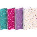 Atraktivní zápisník A5 v elegatních barvách s květinovými vzory pro dámy -malinová, zelená, fialová a krémová. Zápisník má odolné, ohebné desky z kartonu s příjemným jemným hladkým povrchem "Soft Touch". 60 linkovaných listů z extra jemného a hladkého papíru Optik paper gramáže 90 g/m² lze díky dvojité drátové vazbě otáčet o 360°.