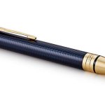 Kuličkové pero Parker Duofold Prestige Blue Chevron má temně modrou metalickou barvu, je vyrobené z nerezové oceli s povrchovou dekorativní strukturou vytvořenou leptáním. Doplňky jsou pokovené 23 karátovým zlatem. Otočný mechanismus pro vysunutí velkokapacitní náplně. Dodáváno s černou náplní. Každé pero má své individuální sériové číslo. Dodáváno v elegantní dárkové krabičce.