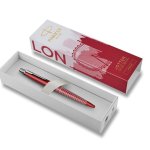 Parker Jotter London ze speciální edice má červené lakované tělo zdobené vzorem panoramatu města Londýn. celý popis