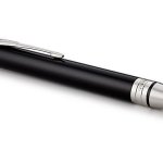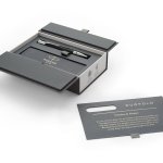 Kuličkové pero Parker Duofold Black CT je vyrobené z houževnaté, sametově černé pryskyřice. Doplňky jsou pokovené palladiem. Otočný mechanismus pro vysunutí velkokapacitní náplně. Dodáváno s černou náplní. Včetně individuálního sériového čísla. Dodáváno v elegantní dárkové krabičce. Vyrobeno ve Francii.