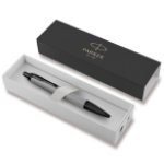 Kuličkové pero Parker Achromatic Grey má mosazné tělo potažené odolnou matně šedou barvou, s černými doplňky. celý popis