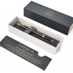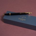 Kuličkové pero Parker Royal I.M. Black GT má mosazné tělo s leskle černou lakovou povrchovou úpravou a s doplňky pokovenými zlatem. celý popis