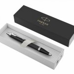 Kuličkové pero Parker Royal I.M. Matte Black CT má mosazné tělo s matnou černou lakovou povrchovou úpravou a s doplňky pokovenými chromem. celý popis