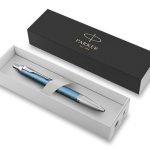 Kuličkové pero Parker Royal I.M. Premium Blue CT má modrošedě lakované tělo se zdobnou rytinou ve vzhledu chevron a s doplňky pokovenými chromem. Stiskací mechanismus pro vysunutí velkokapacitní náplně. Dodáváno v elegantní dárkové krabičce. Vyrobeno ve Francii.