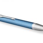 Kuličkové pero Parker I.M. Premium Blue Grey CT má modrošedě lakované tělo se zdobnou rytinou a s doplňky pokovenými chromem. celý popis